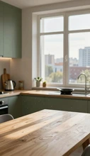 После осмотра мы выявили зоны повышенной нагрузки: столешница обеденного стола, фасады нижних кухонных шкафов и рабочая поверхность. Было принято решение использовать п...
