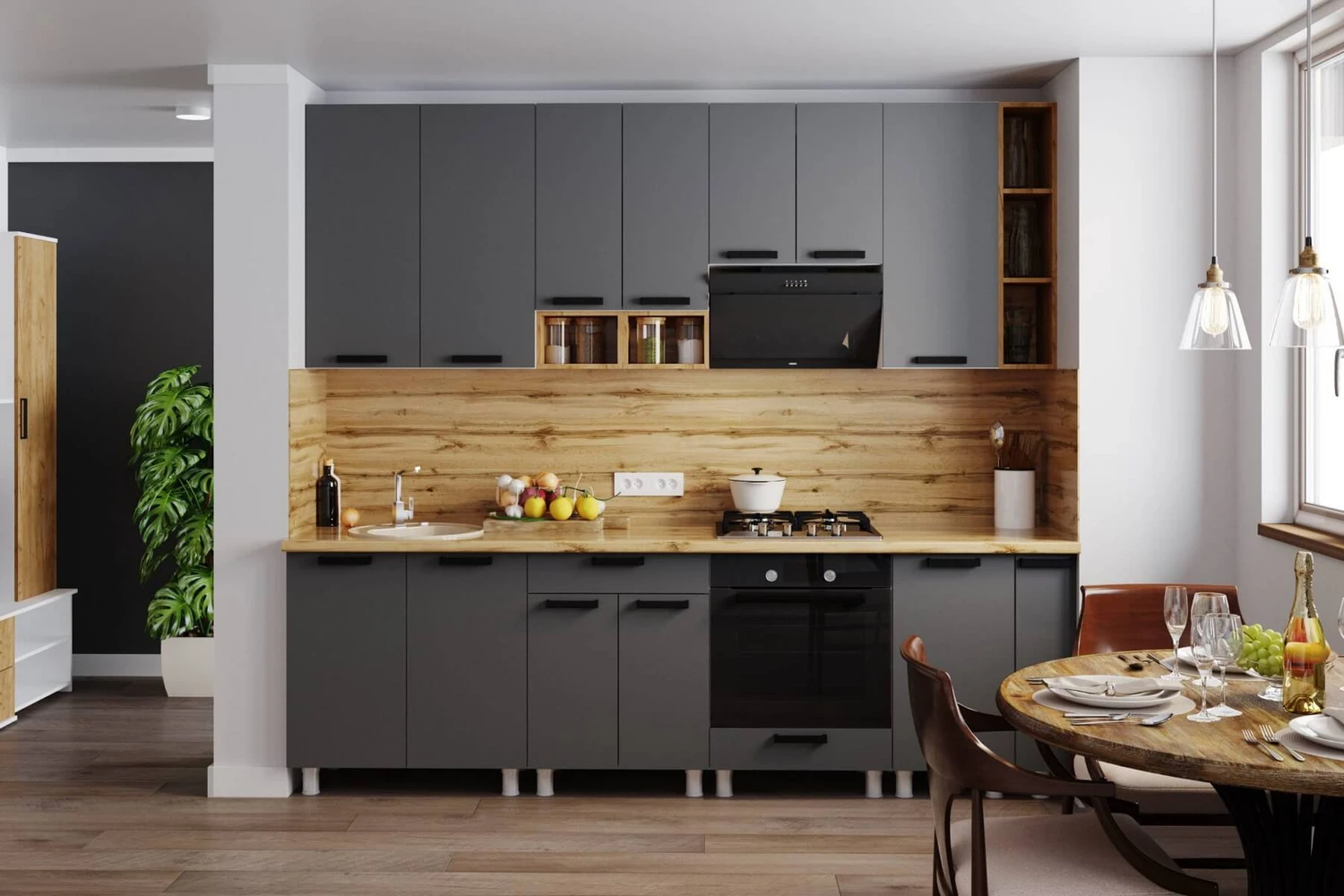 Декоративная пленка для кухни подходит для фасадов из МДФ, ЛДСП и других материалов. С её помощью можно изменить цвет кухни, добавить текстуру дерева или камня, выбрать матовое или глянцевое исполнение. Работы выполняются аккуратно, без демонтажа кухни, в большинстве случаев — за 1 день.