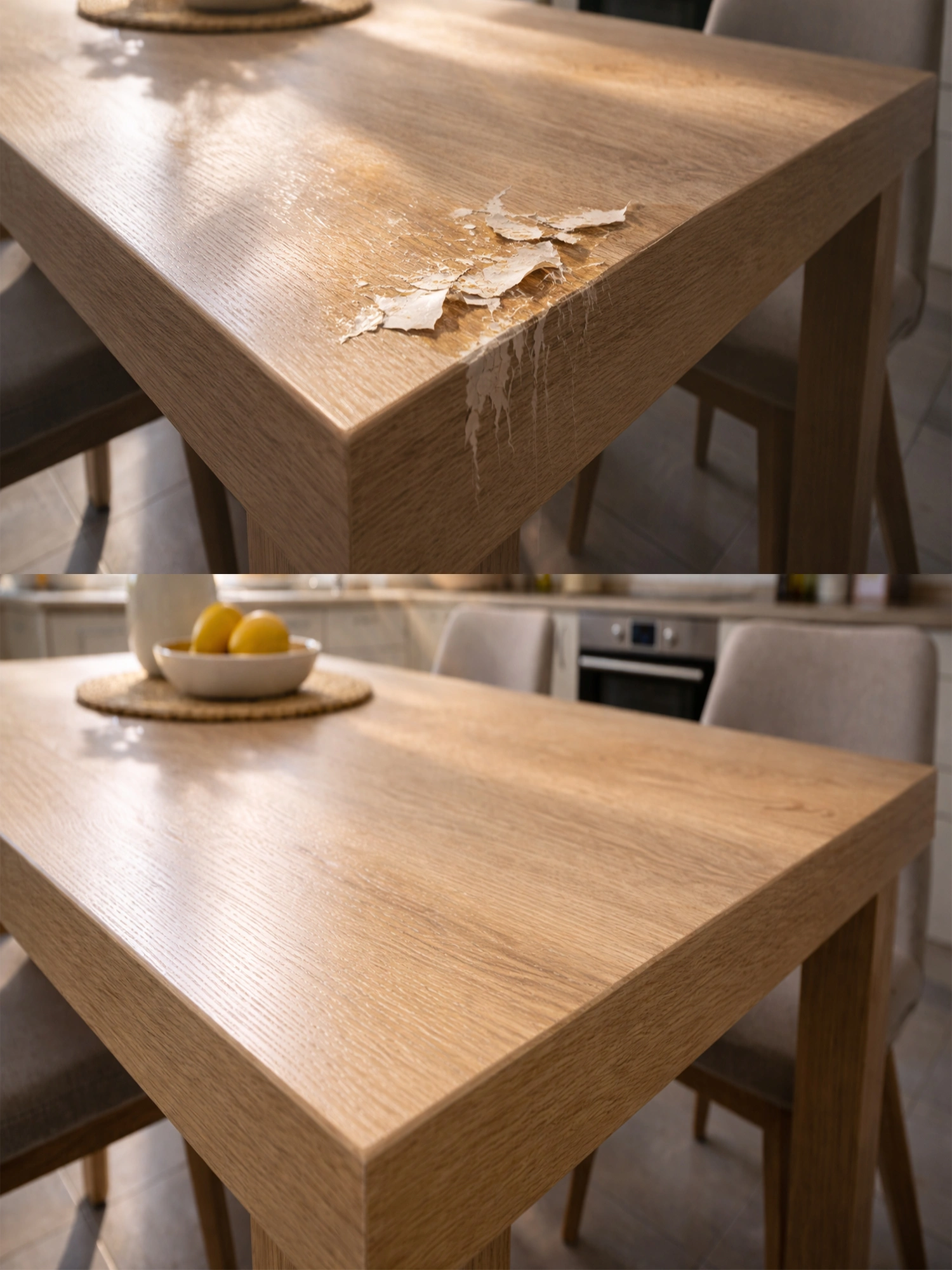 Результат: мебель и столешницы выглядят цельно и аккуратно, без визуальных следов ремонта.